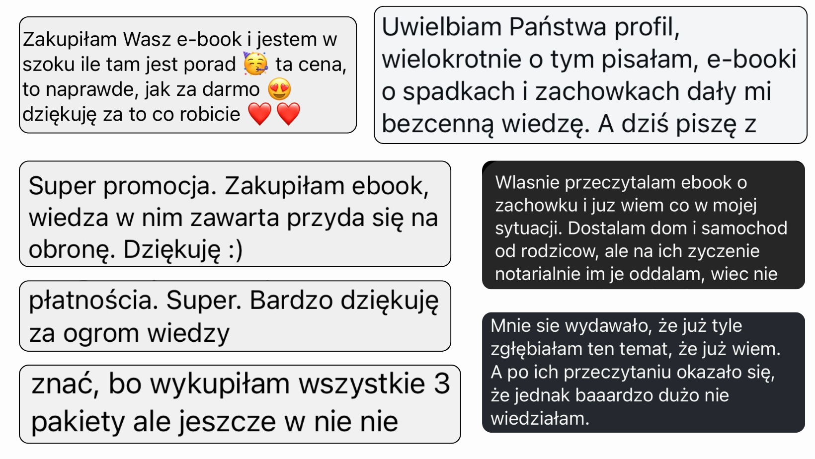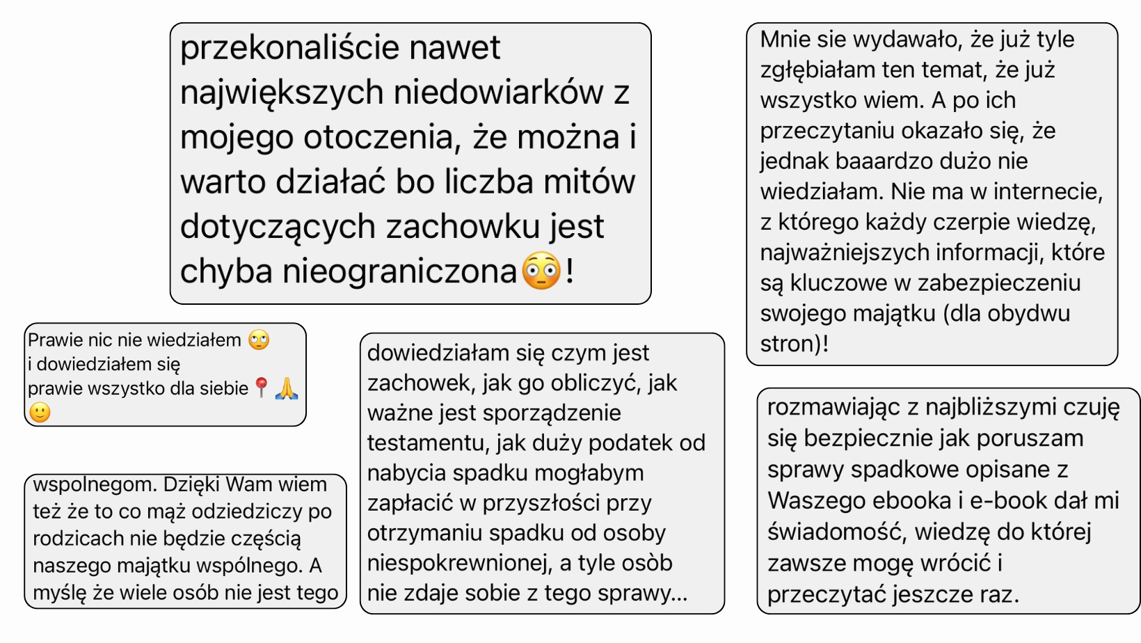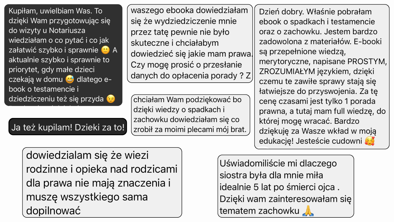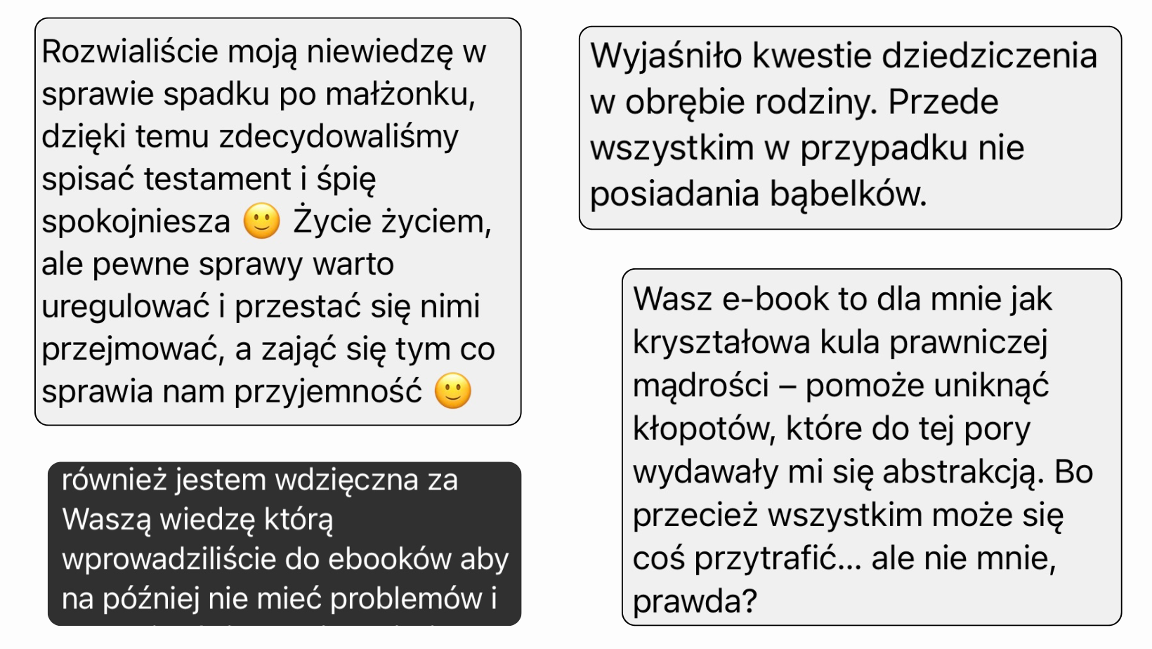 Dzięki tysiącom wiadomości, które otrzymaliśmy od Was, opracowaliśmy najbardziej powtarzające się problemy dotyczące spadków, testamentu, dziedziczenia i zachowku i wskazaliśmy ich rozwiązania, abyś TY czuła/ł się bezpiecznie !!